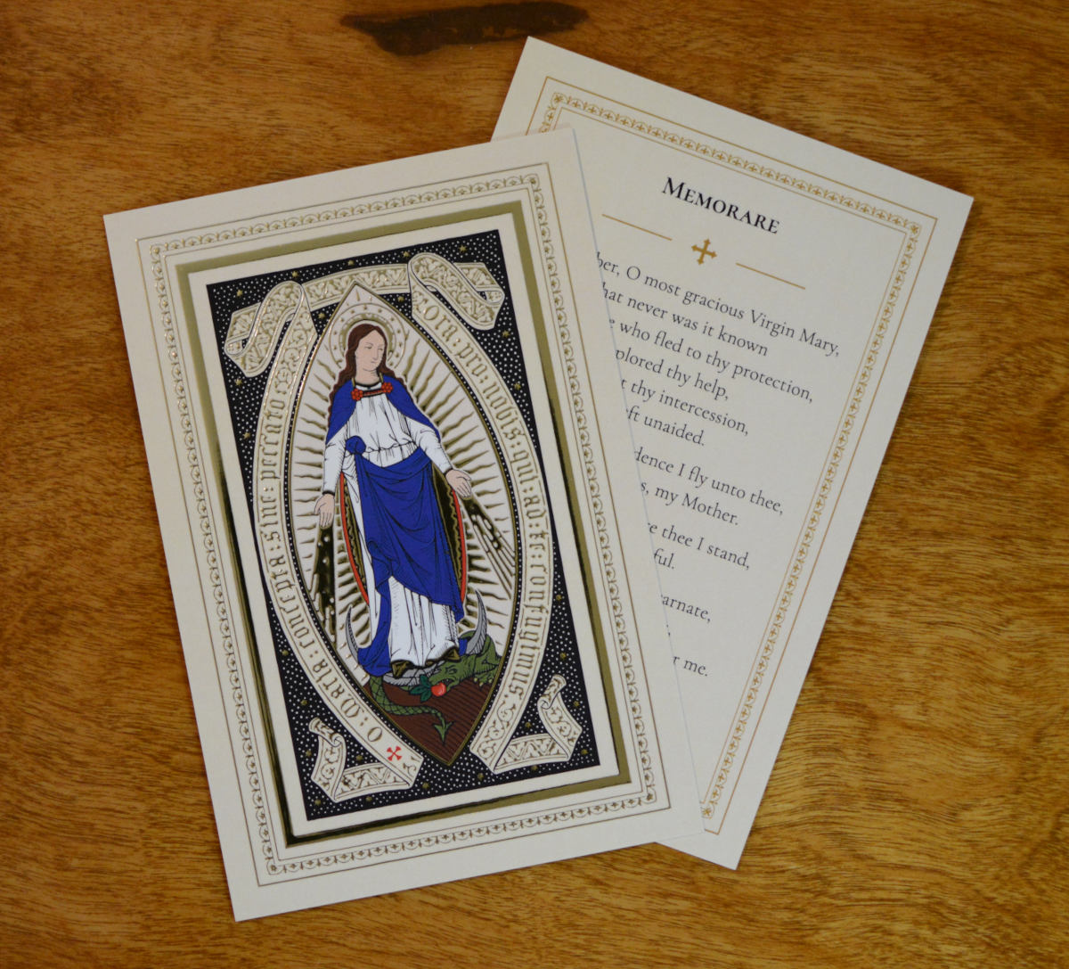 Memorare Holy Card with Gold Foil Detail